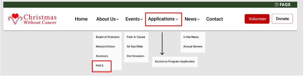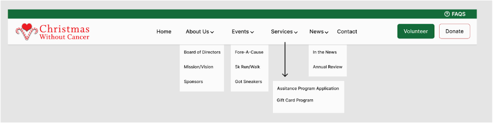 To resolve this issue, I collaborated with the Christmas Without Cancer Organization to redesign and implement their website.