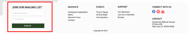 Revise: To address the issue of the Join Mailing List option being overlooked by the majority of participants, we implemented a visual enhancement by adding a prominent dark line to the footer, drawing attention to the Join Mailing List section and improving its overall visibility.