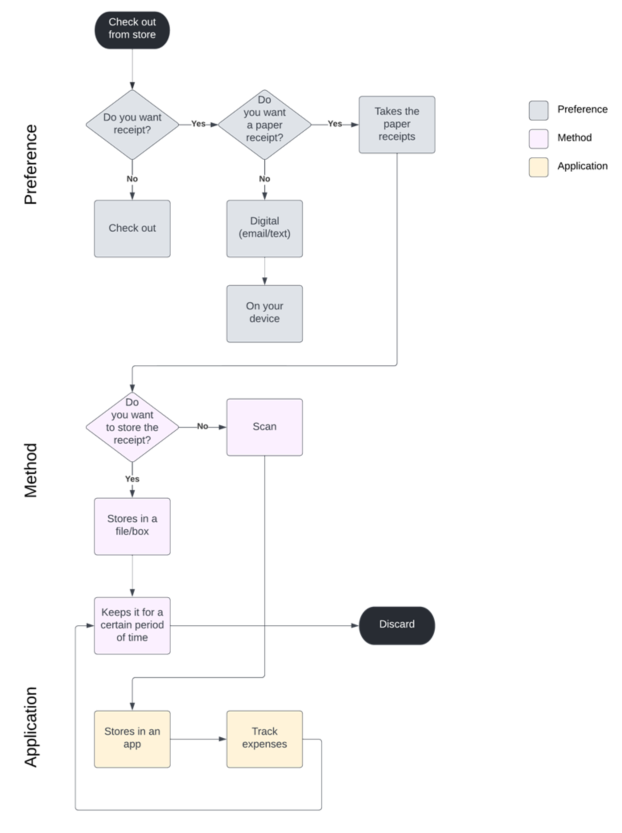 Initial Interaction: Through my interviews, I tried to understand what participants prefer when it comes to receipts and why they make that choice. The interview focused on why than what.
