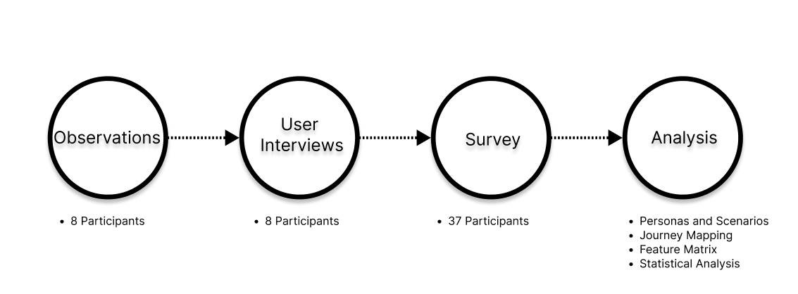 Why User Interview: Through user interviews, I could ask questions raised in the Observations. I recruited 8 participants for user interviews.
